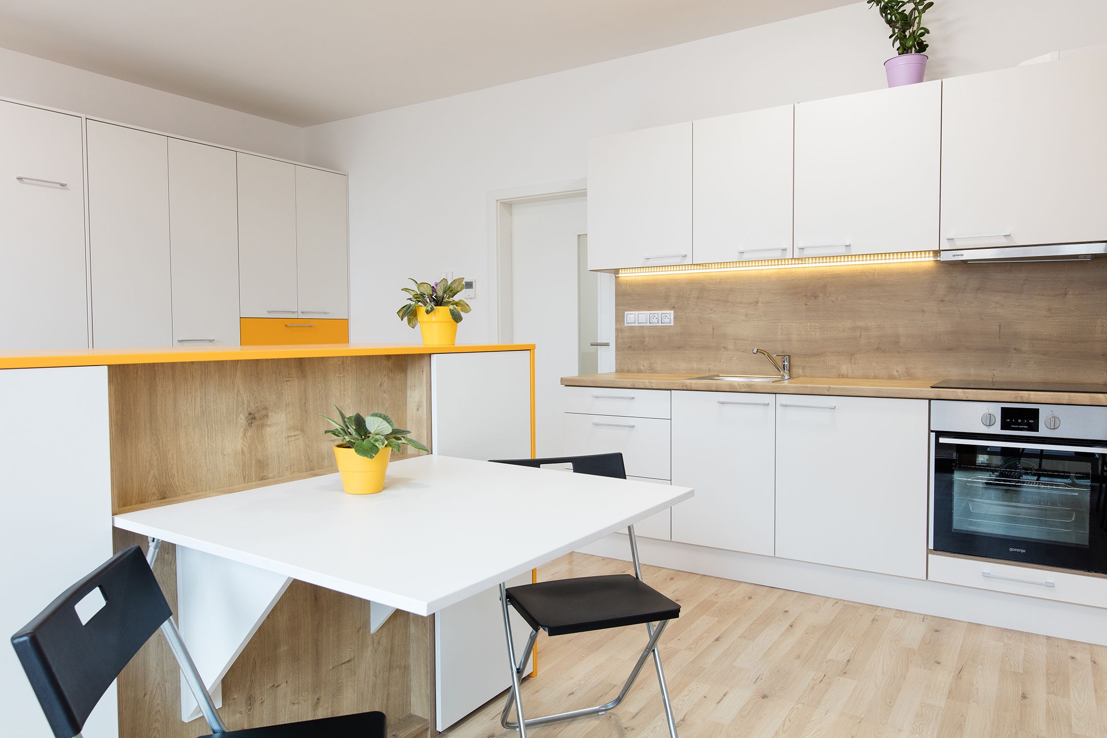 Ano, můžeme navrhnout energeticky úspornou kuchyň s LED osvětlením, úspornými spotřebiči a chytrými technologiemi.